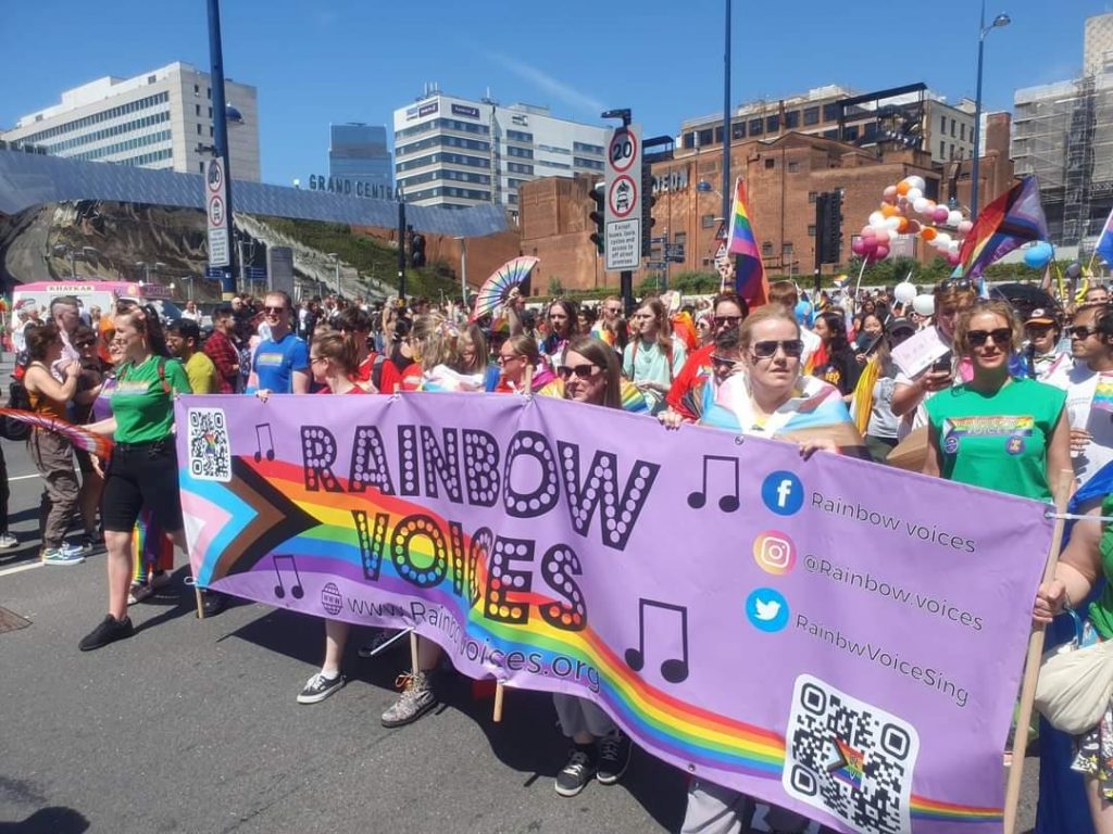 Below are a selection of images of Rainbow Voices in action at LGBT+ events across the region and the UK.