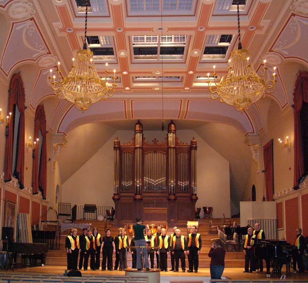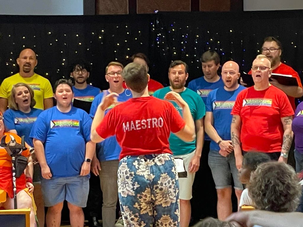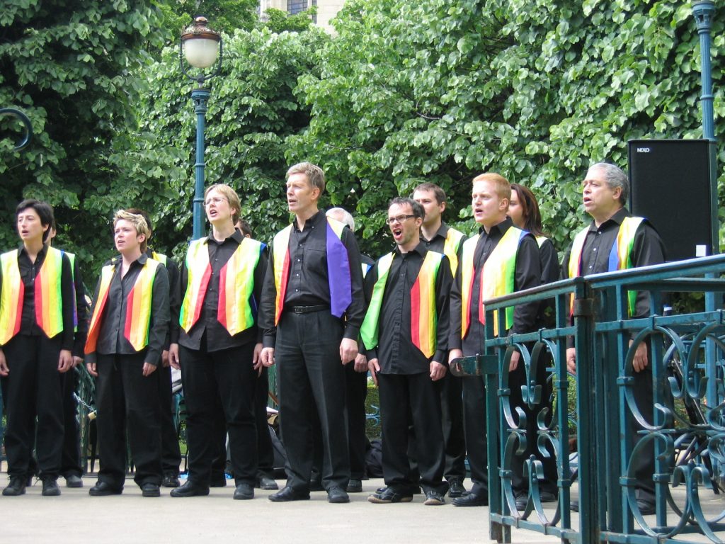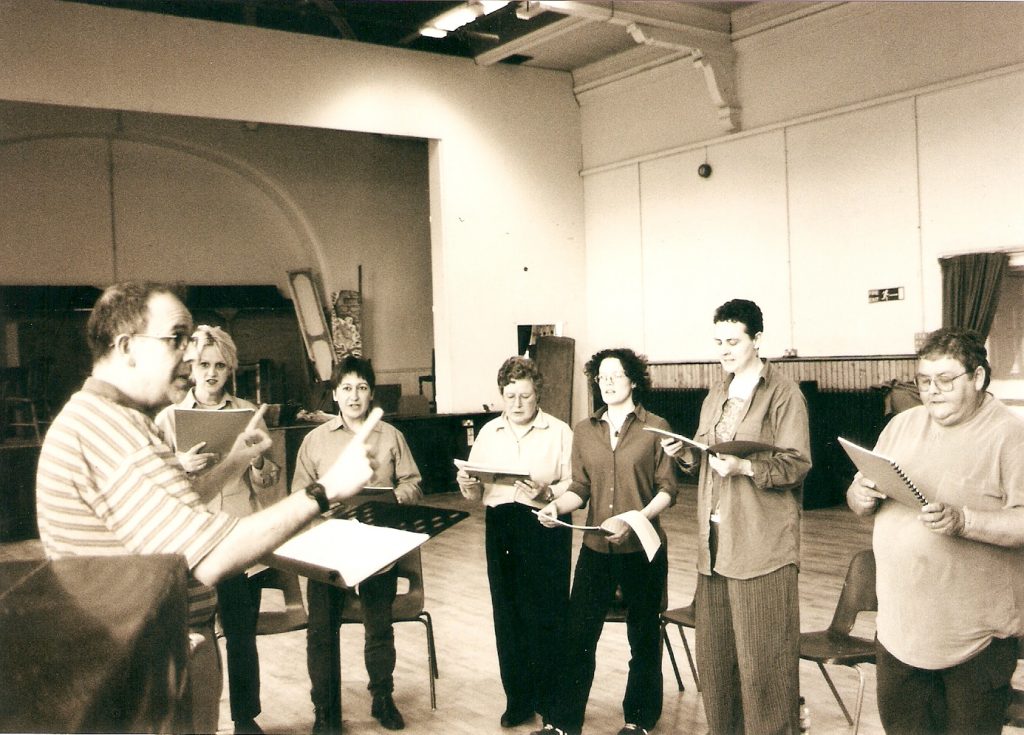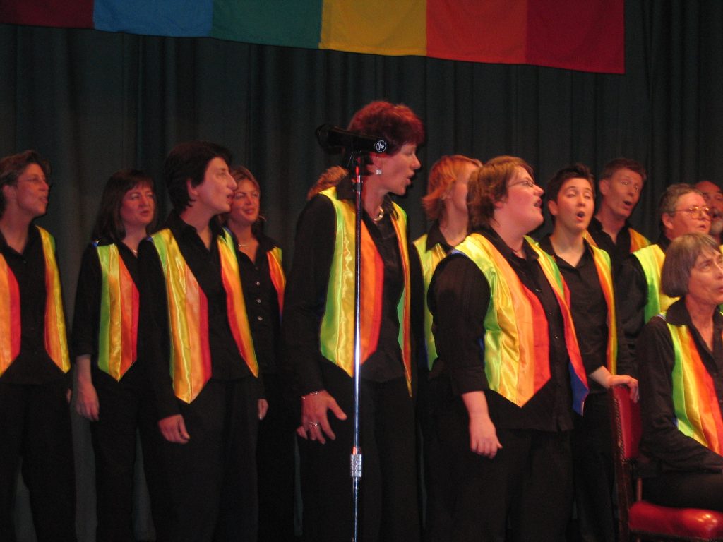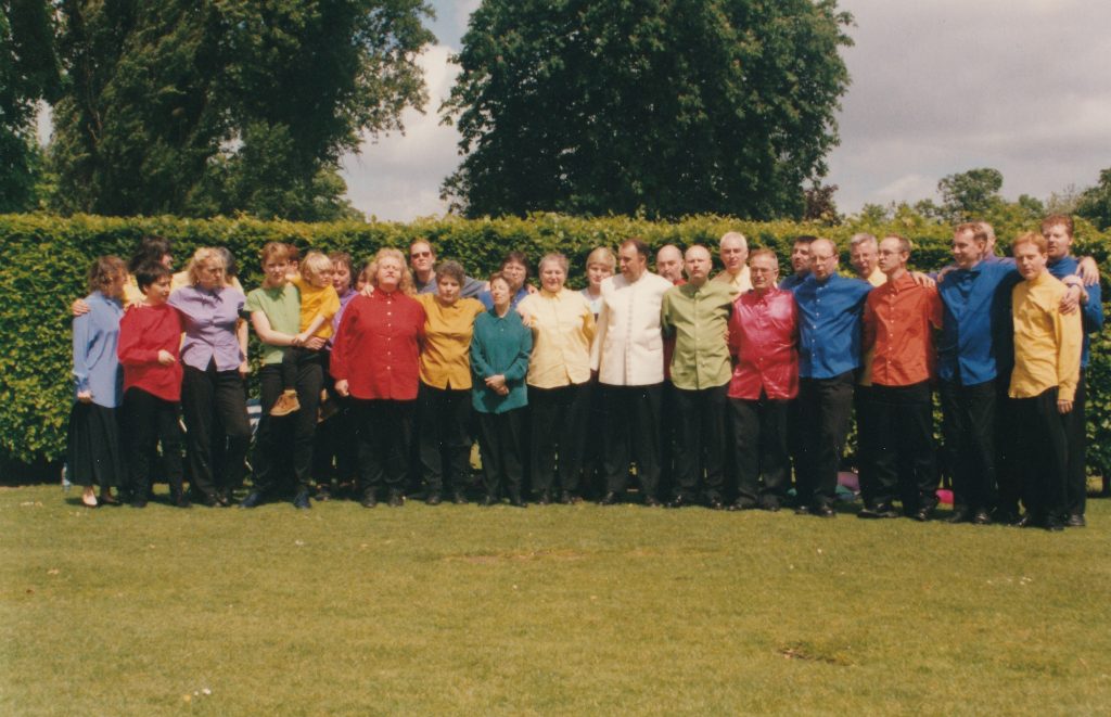 A chance meeting on a Gay Outdoors Club walk between Louis Schroeder, who was looking for a gay choir, and Paul Naylor-Gray, who wanted to form one, led to the creation of Rainbow Voices. As the numbers at the initial rehearsals at Paul and his partner David’s house swelled, rehearsals were moved led to the Friends Meeting House and a basic organisational structure was created.